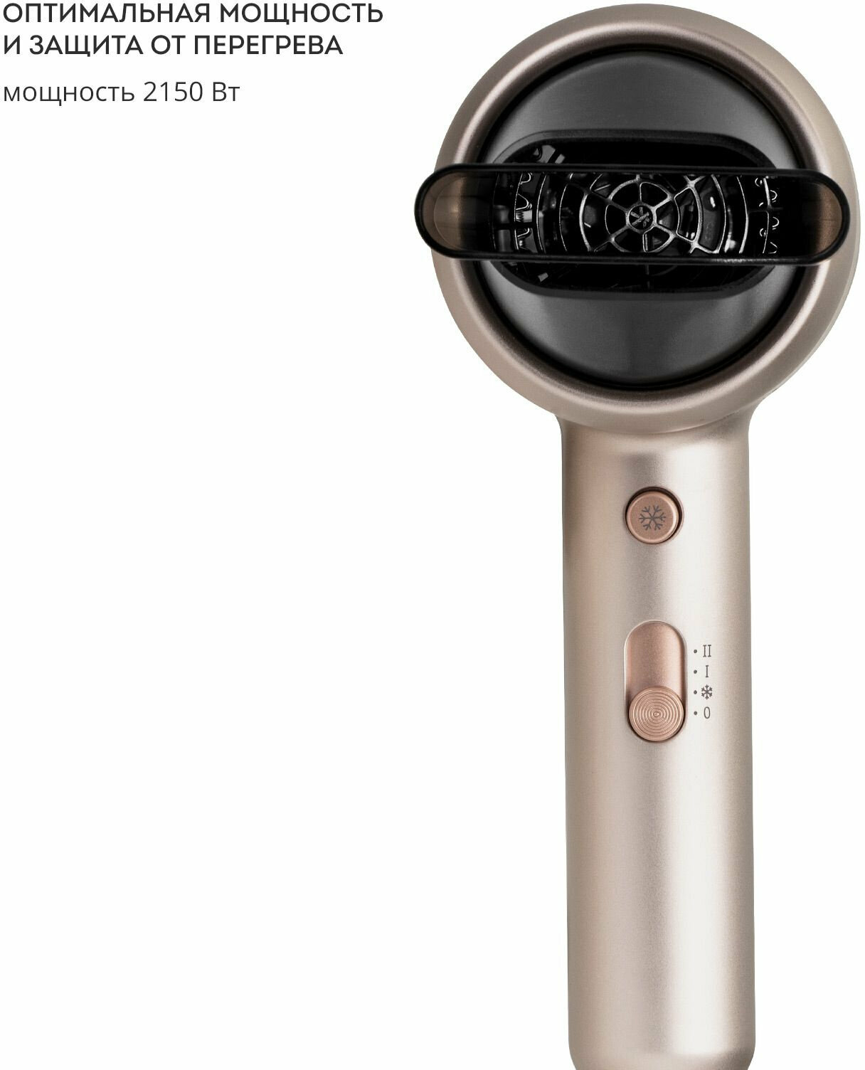 Type: hair dryer, accessory type: nozzle for gentle drying, hair dryer power: 2150 W, additional functions: cold air supply, nozzles: concentrator, number of heating modes: 2, number of speeds: 2, special