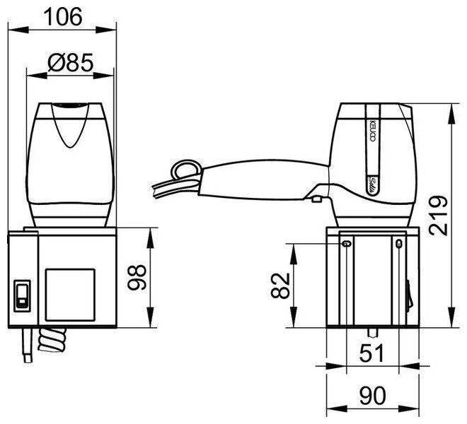 Hair dryer Keuco Plan 14995 010037 complete with wall holder, color: dark grey/chrome