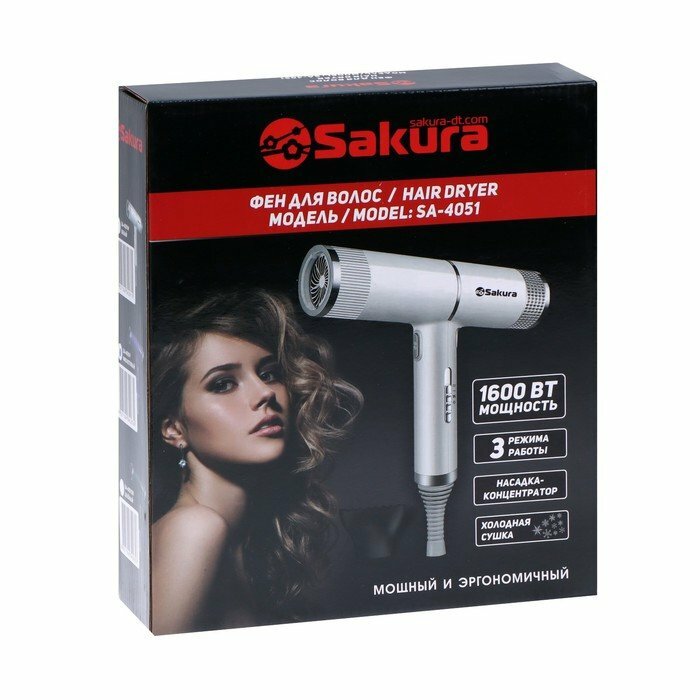 Hair dryer SA-4051W, 1600 W, 3 speeds, 3 temp. mode, hub, cord 1.8 m, white
