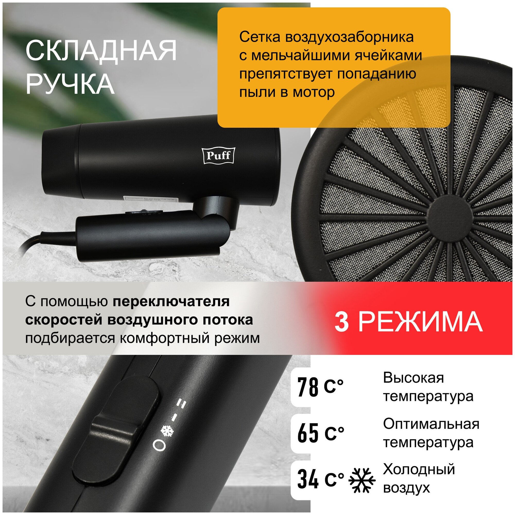 For hair Puff-1301Bl, black, 1.3 kW, Art: 1405.026