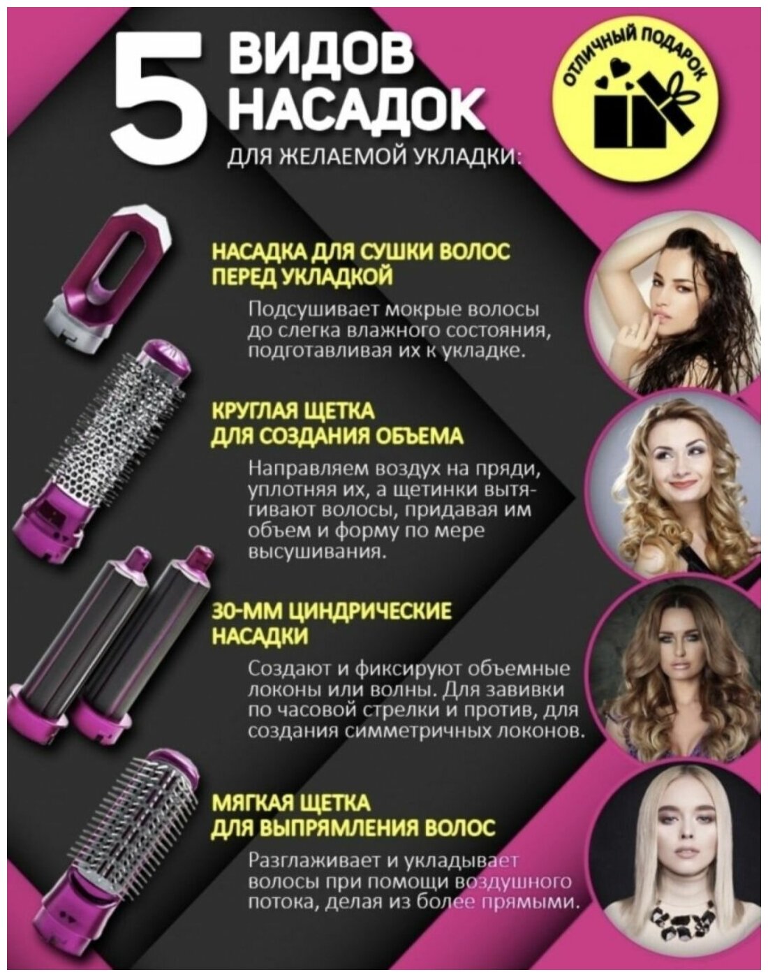 Type: hair dryer, hair dryer power: 2200 W, additional functions: ionization, independent adjustment of heating and air flow, cold air supply, attachments: diffuser, concentrator, number of heating modes: 3, quantity