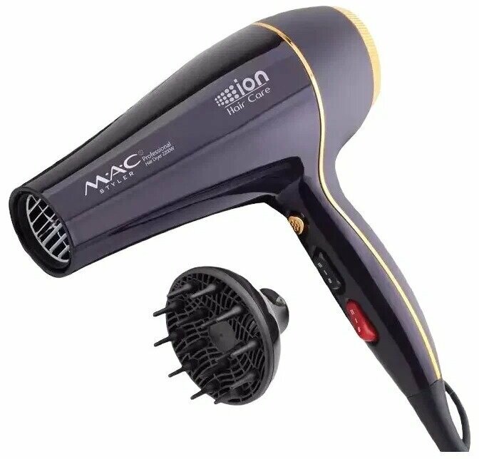 Professional hair dryer, with attachments, for hair styling, 2200W, with diffuser, cold airflow. violet
