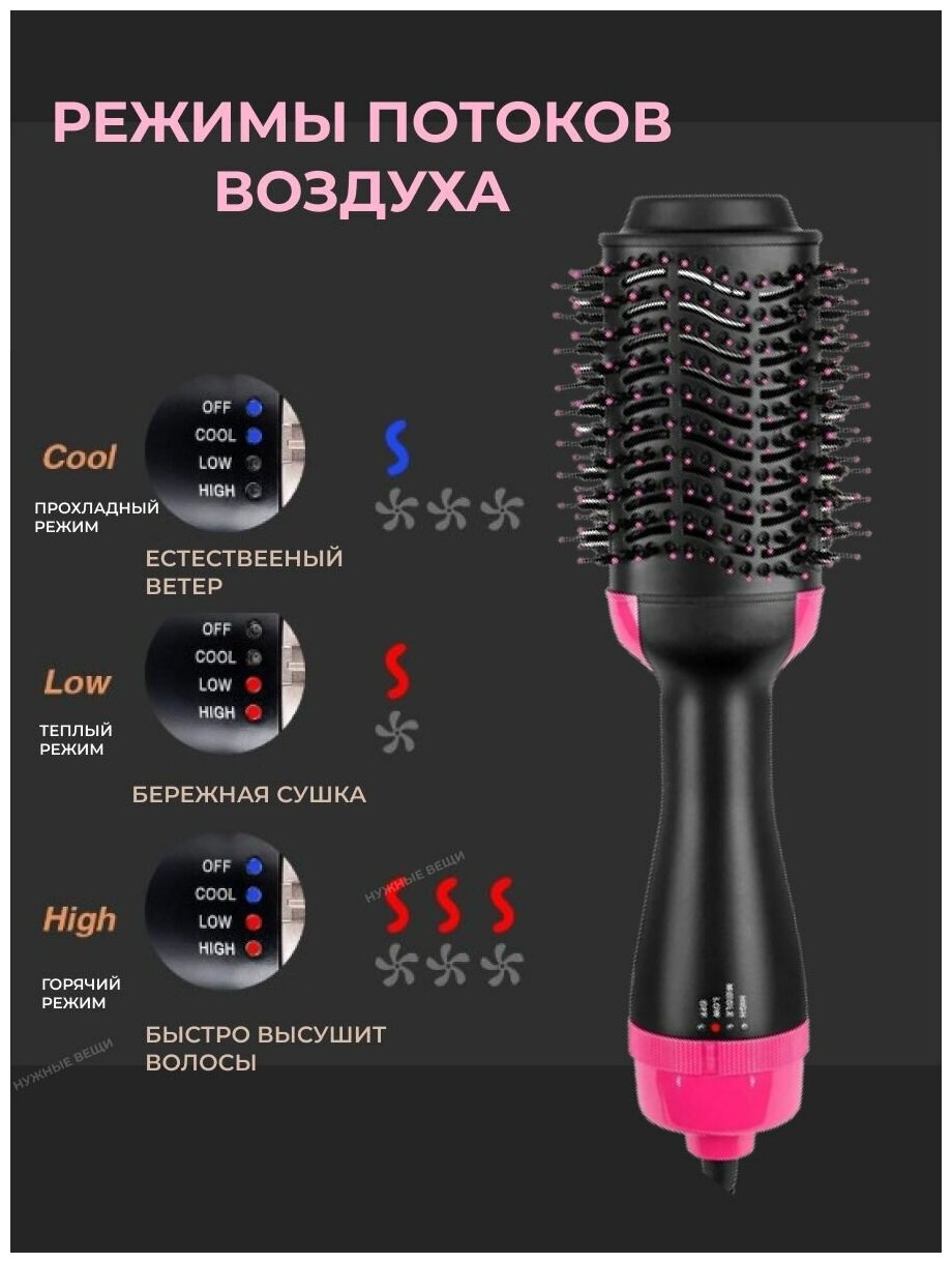 Type: hair dryer-brush, hair dryer power: 1000 W, additional functions: ionization, cold air supply, attachments: brush, number of speeds: 2, features: 360° cord rotation