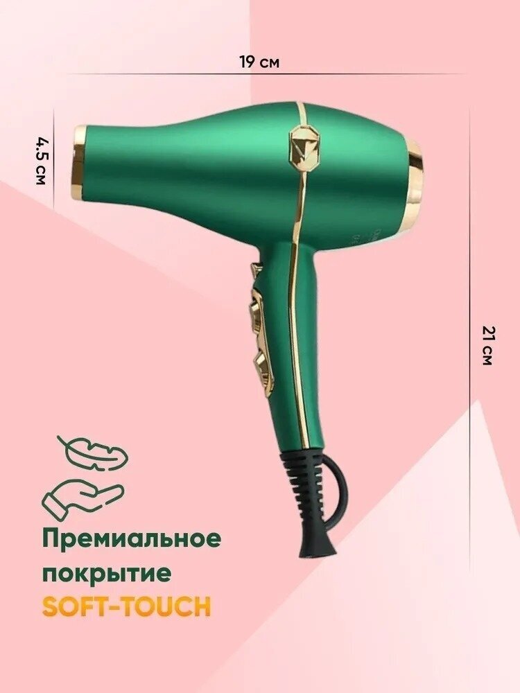 Type: hair dryer, hair dryer power: 8500 W, additional functions: ionization, independent adjustment of heating and air flow, cold air supply, nozzles: concentrator, number of speeds: 3, power cord length: 3 m