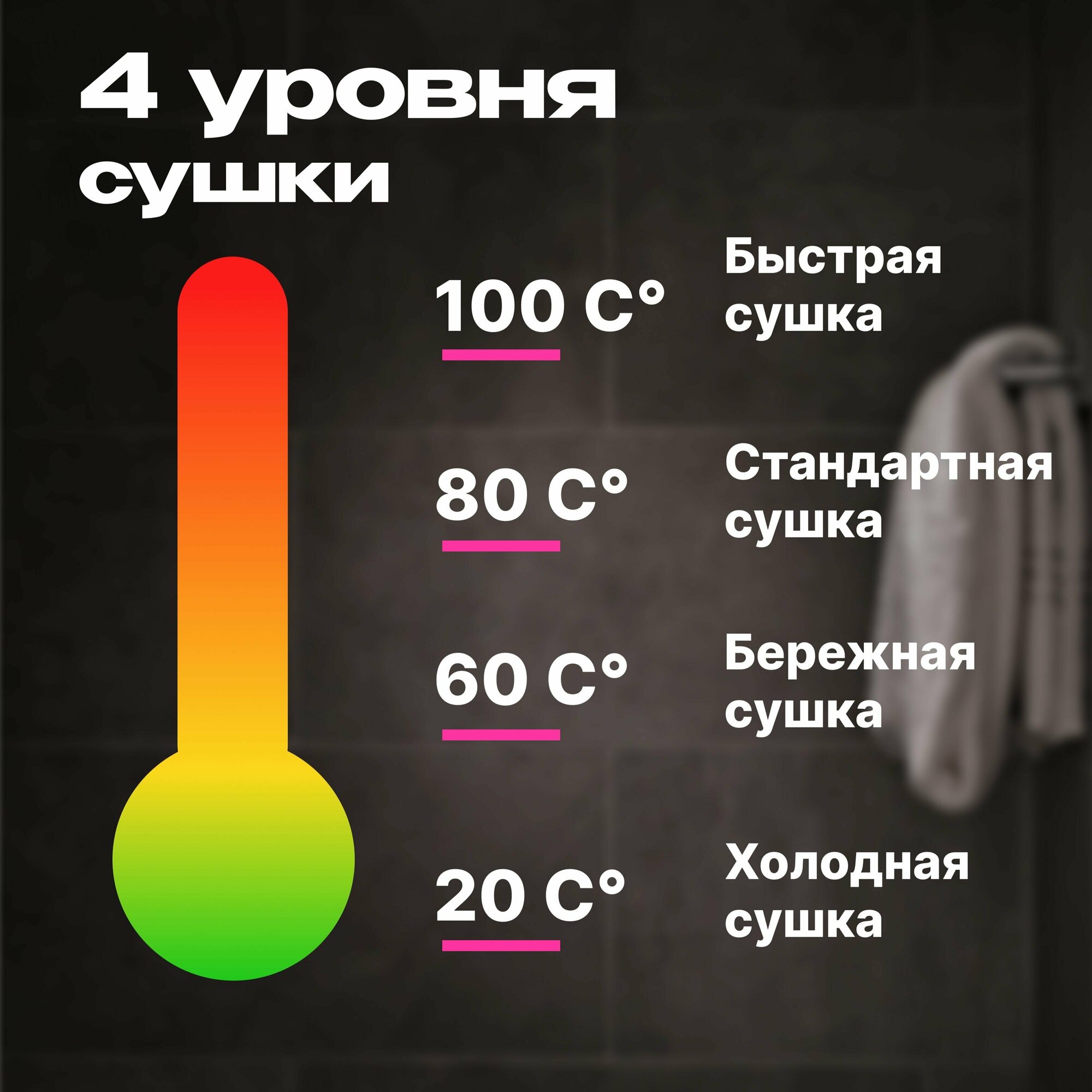 Type: hair dryer, accessory type: set of attachments, hair dryer power: 1600 W, additional functions: ionization, attachments: active diffuser, diffuser, for unruly hair, concentrator, brush, number of heating modes: 4, quantity