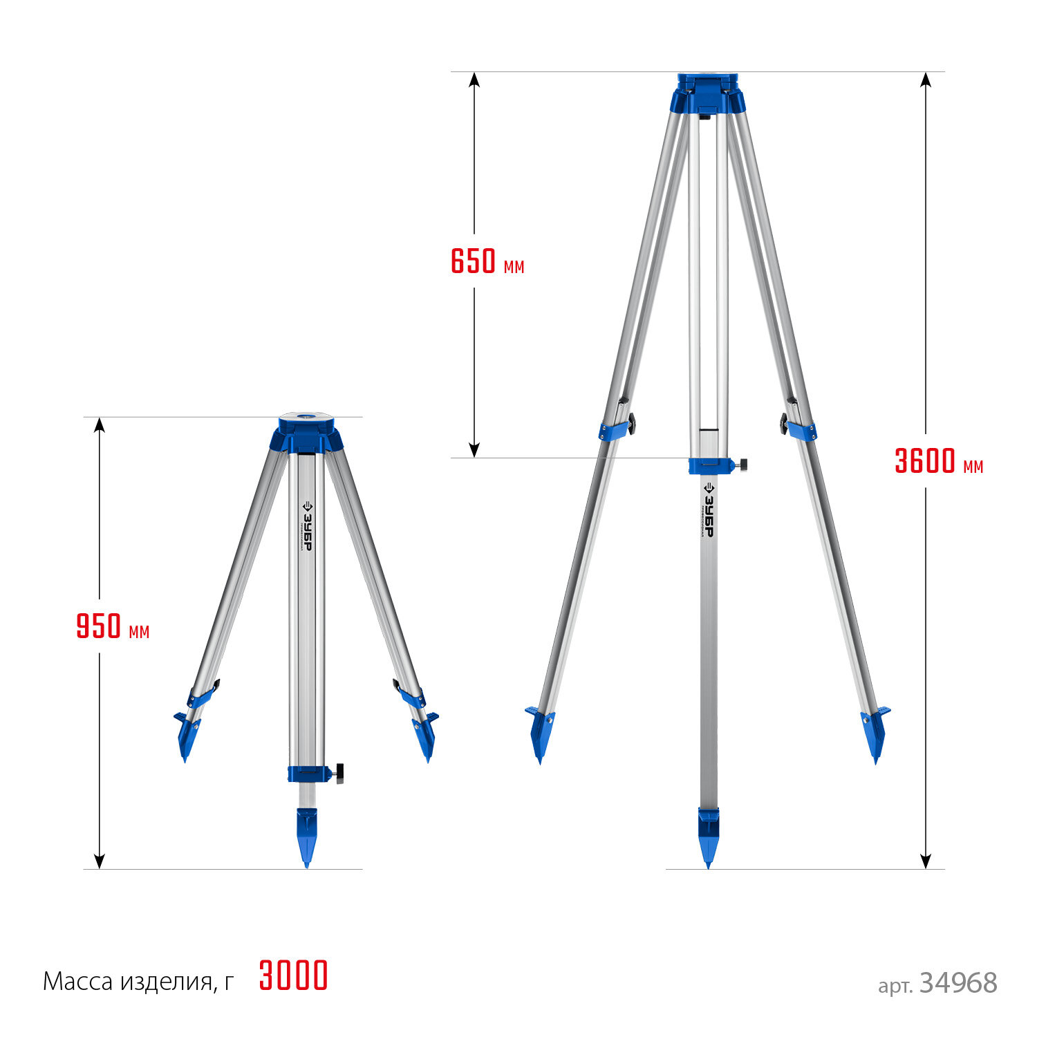 Tripods, milestones, rails for levels and laser levels
