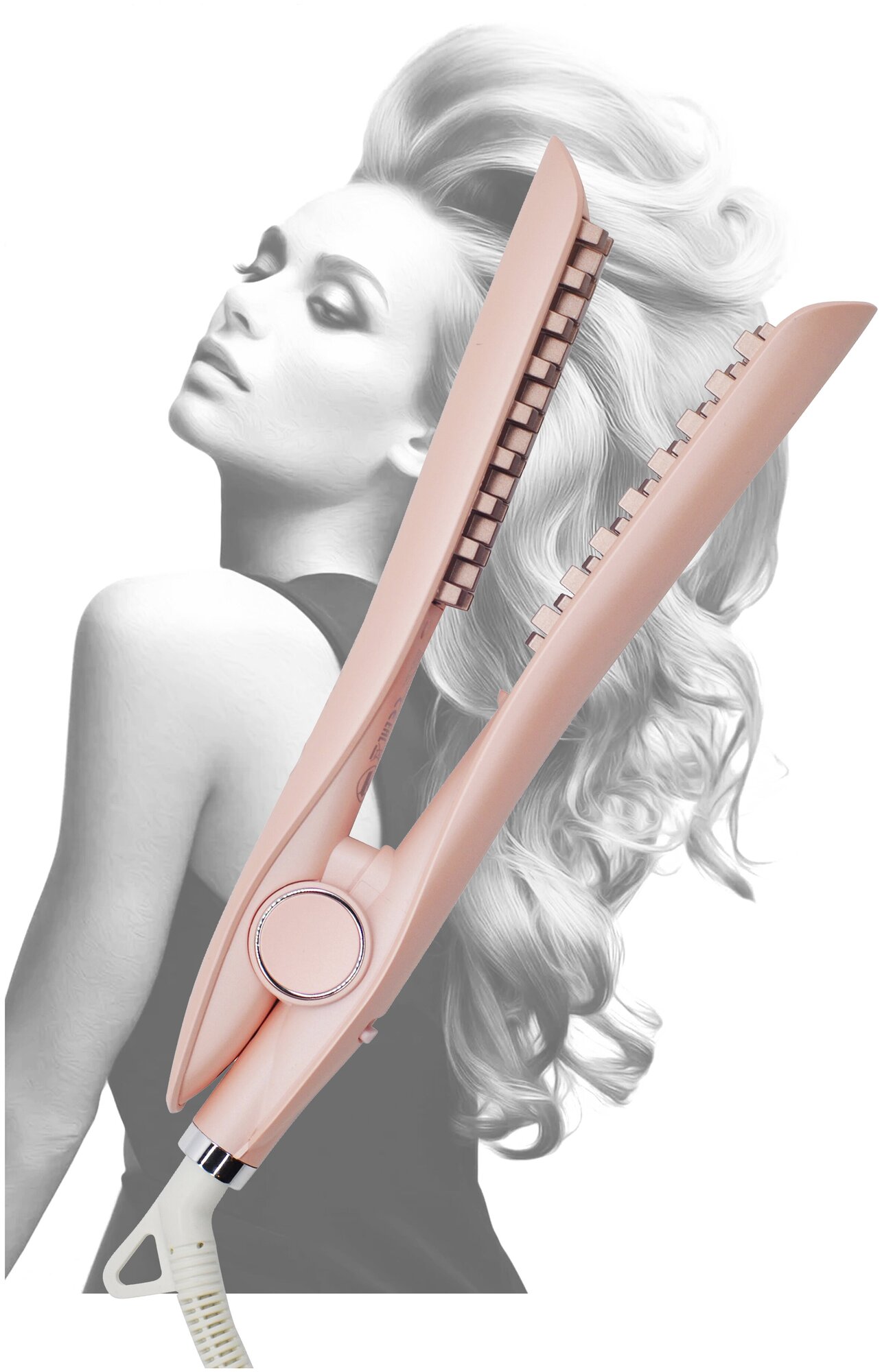 Professional chess curling iron RoziaPro, root volume, RoziaPro hair, pink care
