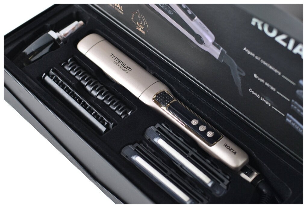 Type: tongs, coating: ceramic, type of tongs: curling iron, purpose: straightening, corrugation, styling, power: 55 W, features: cord rotation, display, readiness for use indication, hanging loop, attachments included