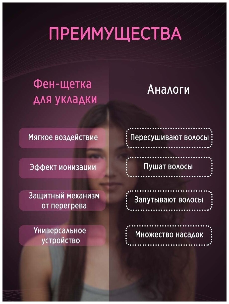 Type: thermal brush, type of curling iron: thermal brushing, purpose: straightening, curling, styling, additional functions: ionization, features: cord rotation, power indicator