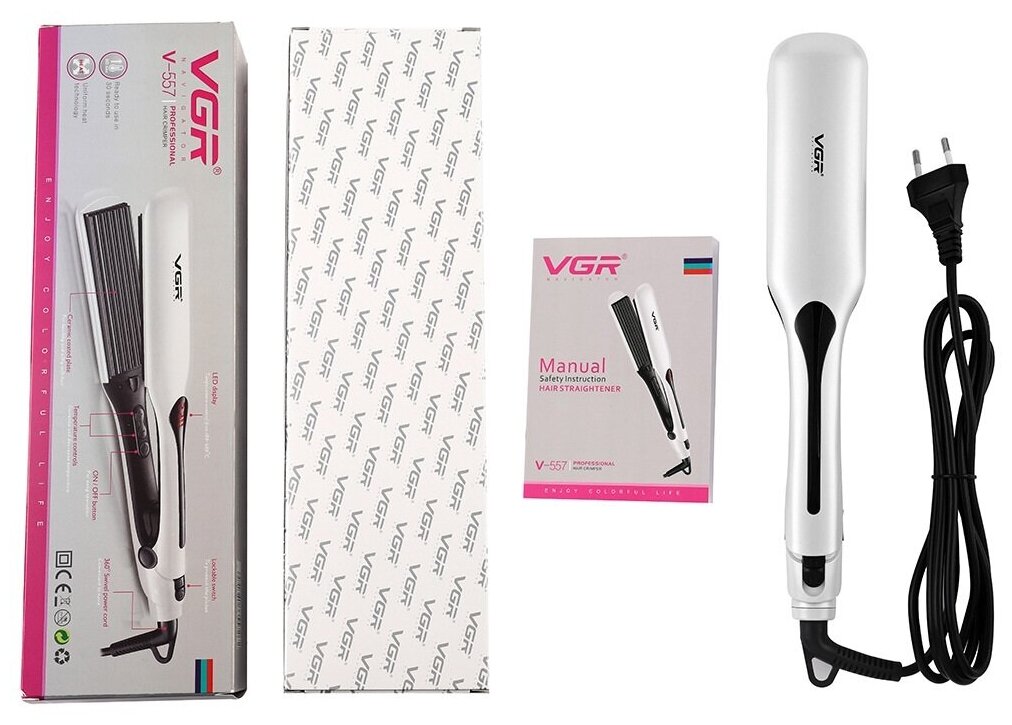 Type: tongs, coating: ceramic, type of tongs: corrugated, purpose: corrugation, laying, additional functions: fast heating, ionization, maximum heating temperature: 230 °C, number of heating modes: 14, power