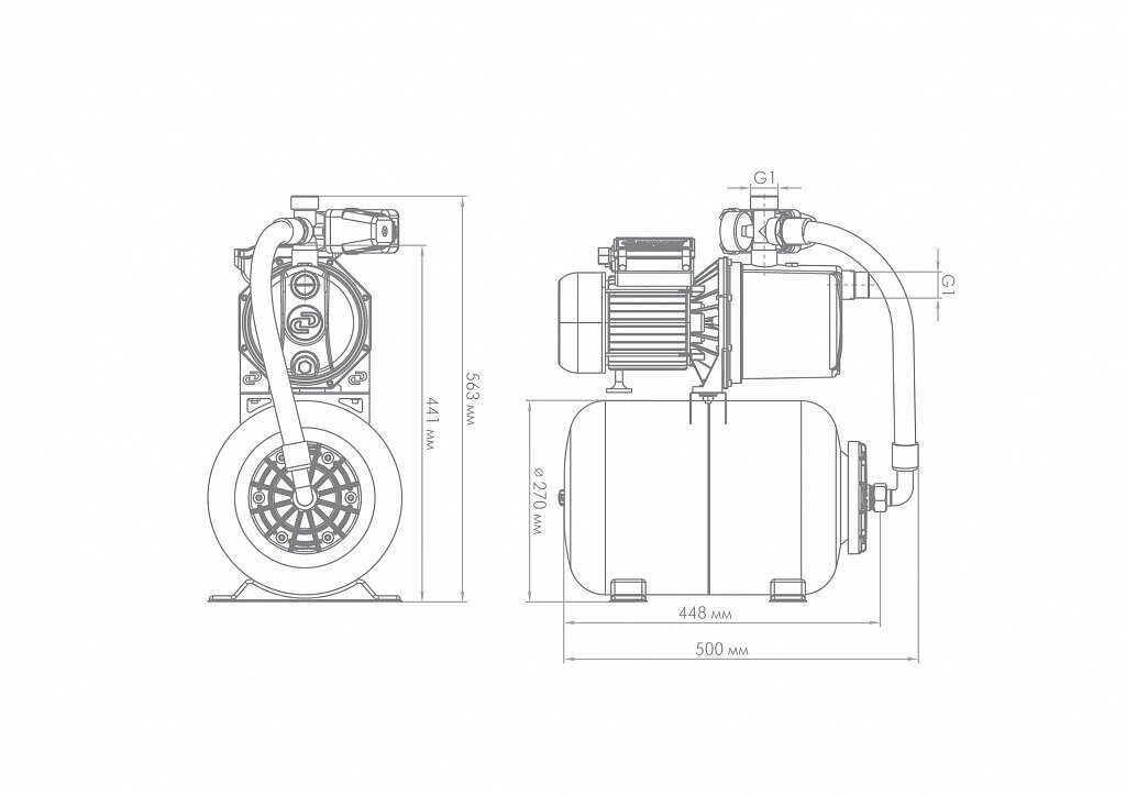 Submersible pump type: pumping station, surface pump type: pumping station, water quality: clean, maximum pressure: 50 m, throughput: 4.20 m³/hour, immersion / suction depth: 9 m, depth up to the mirror