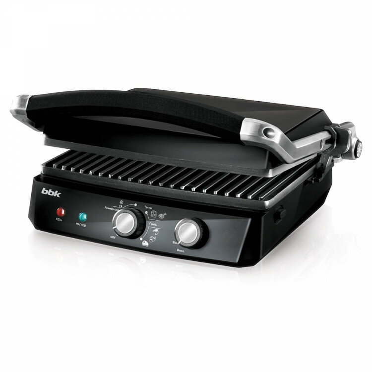 Non-stick coating, contact grill, drip tray, height adjustment of the top panel, removable plates