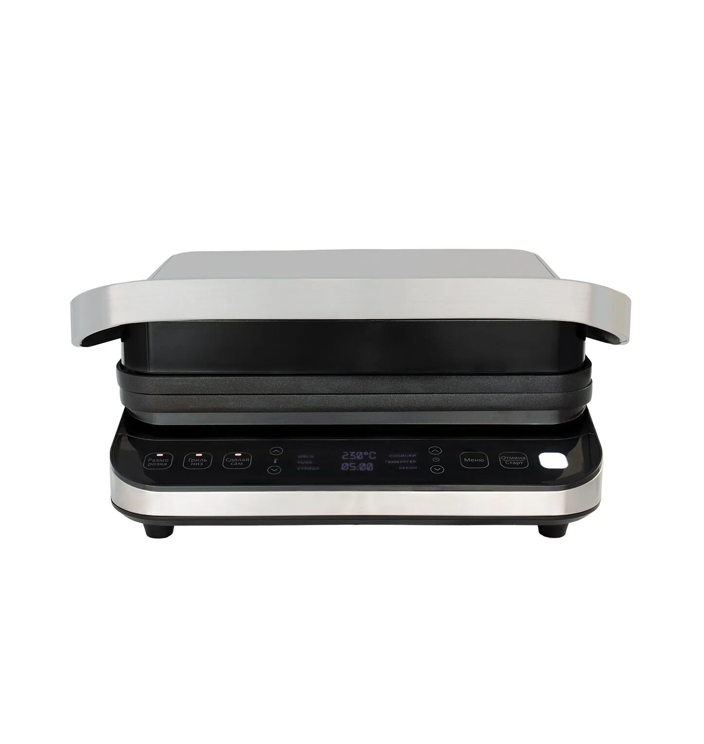 Type: grill, power: 2000 W, control: electronic, features: removable plates, additional functions: automatic shutdown, overheat protection, work surface material: metal, weight: 5.10 kg