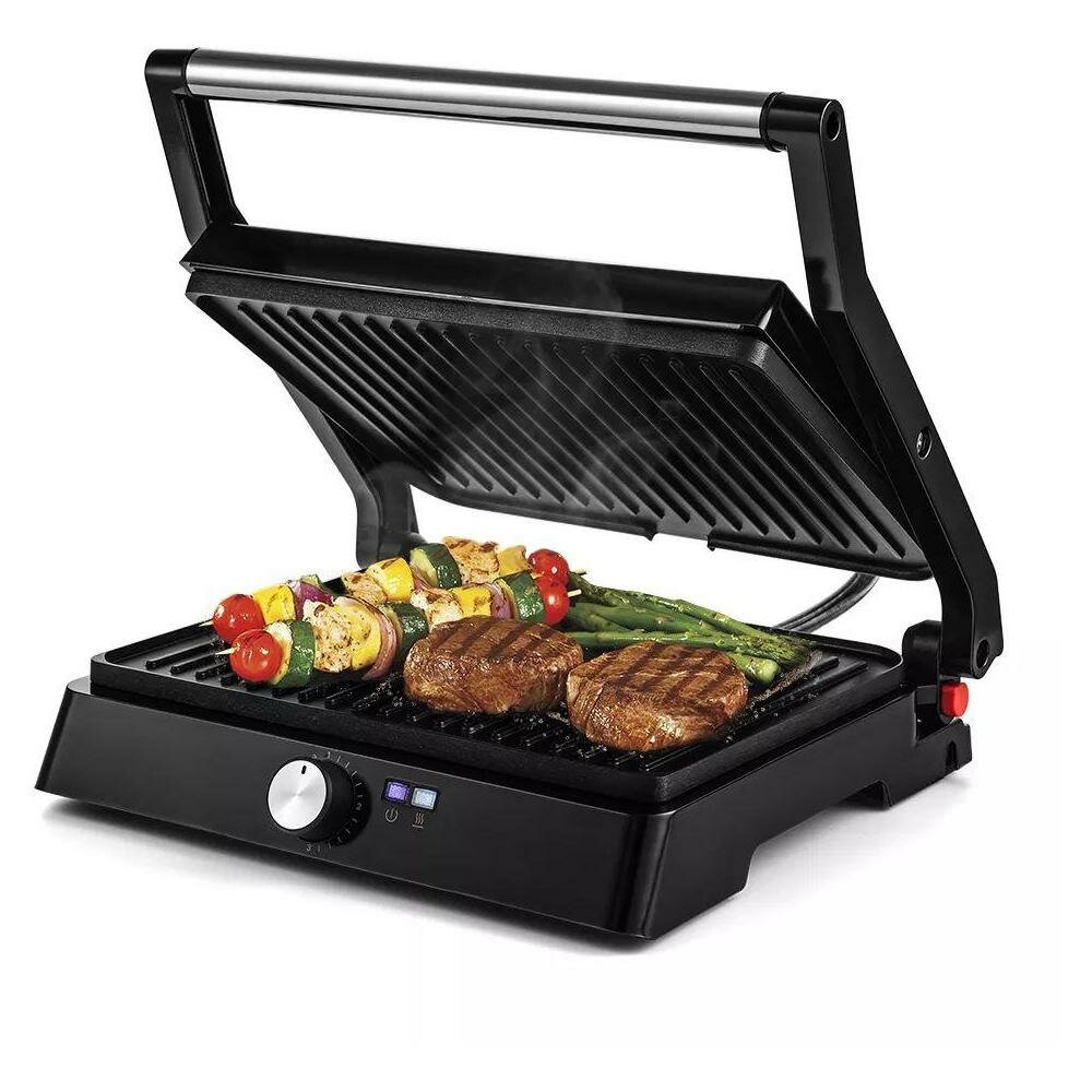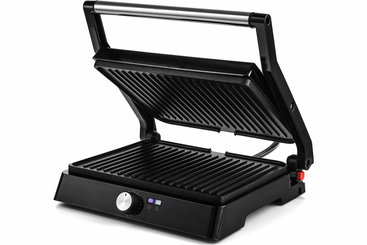 Type: grill, power: 2200 W, control: mechanical, features: non-stick coating, contact grill, fat collection tray, additional functions: the ability to use the top panel as an independent