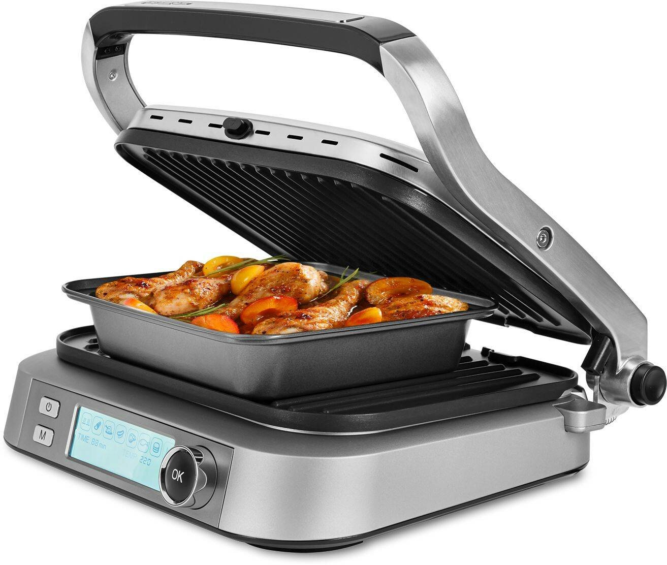 Type: grill, power: 2000 W, control: mechanical, features: non-stick coating, contact grill, fat collection tray, height adjustment of the top panel, removable plates, additional functions: possible
