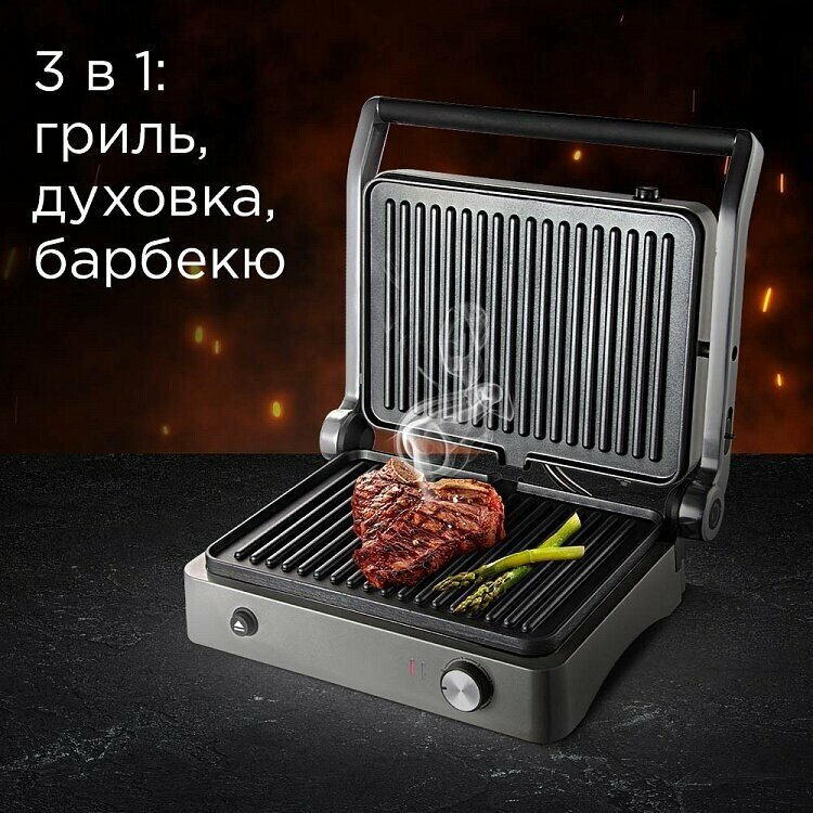 Type: grill, power: 2000 W, control: mechanical, features: non-stick coating, contact grill, fat collection tray, height adjustment of the top panel, removable plates, additional functions: possible