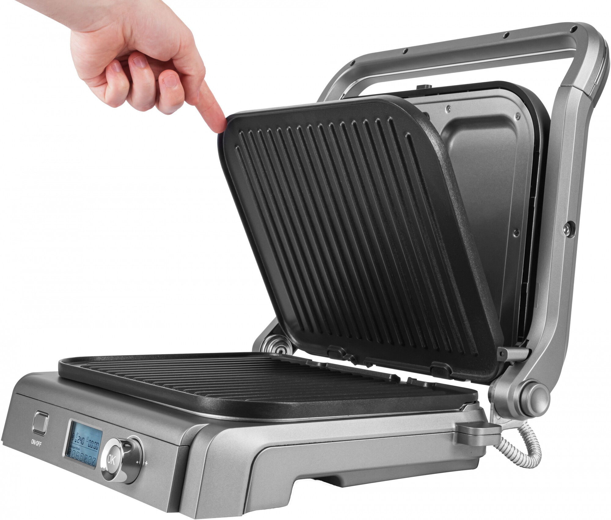 Type: grill, power: 2000 W, control: mechanical, features: non-stick coating, contact grill, fat collection tray, height adjustment of the top panel, removable plates, additional functions: possible