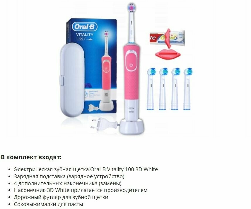 Oral-B Vitality D100, 4 additional brushes, toothpaste extractor and travel case