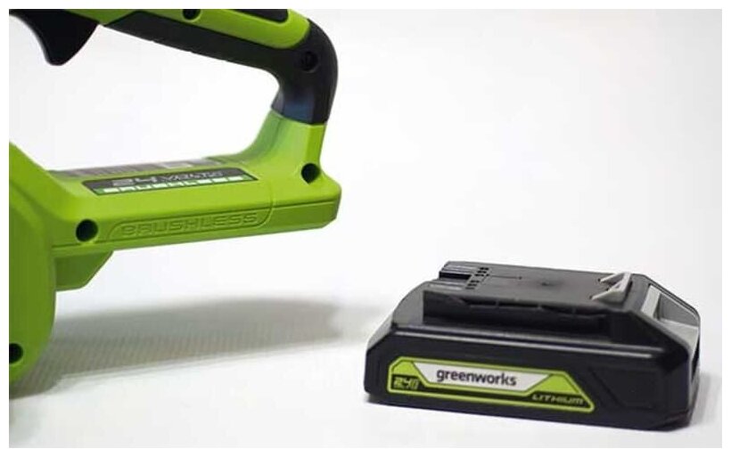 Cordless chain saw Greenworks Art. 2007007, 24V; Battery Greenworks 24V, 4Ah; Charger Greenworks 24V, 2A; Manual; Warranty card.