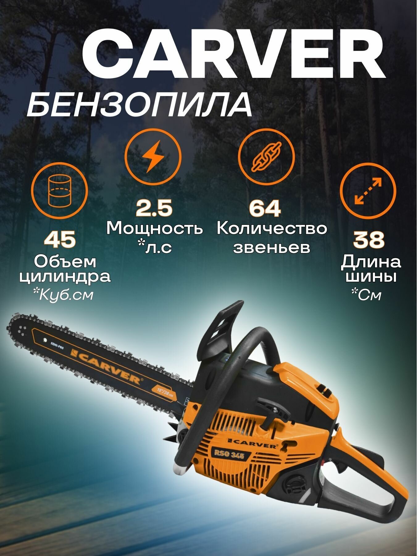 Chainsaw CARVER RSG 345 1.8 kW, 2.5 l. s, 45 cm cube, tire 15-38 cm, chain 0.325-1.5-64