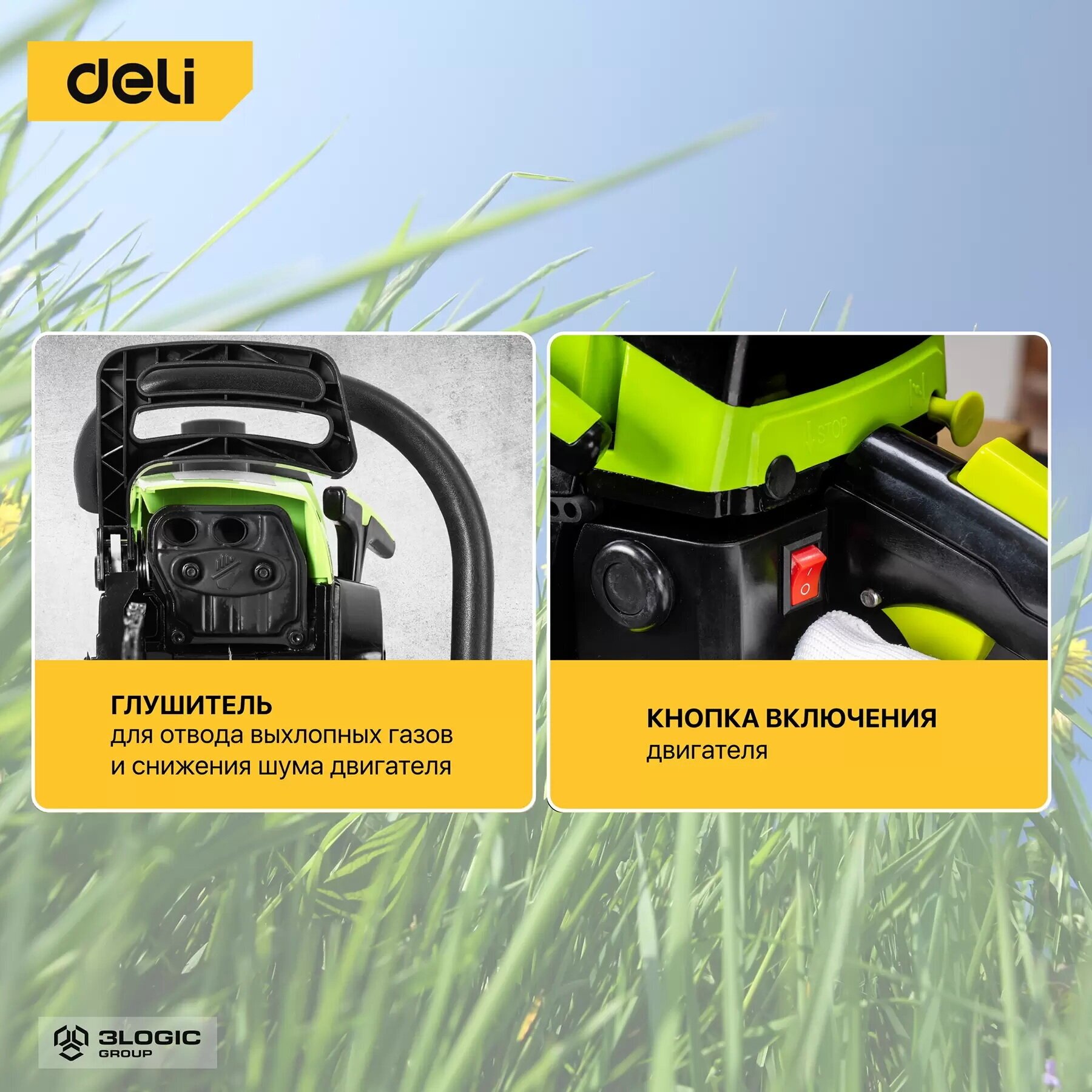 Chainsaw Deli DL585020 2 kW, volume 58 cm3, 10000 rpm, bar 50 cm, chain pitch 3.8