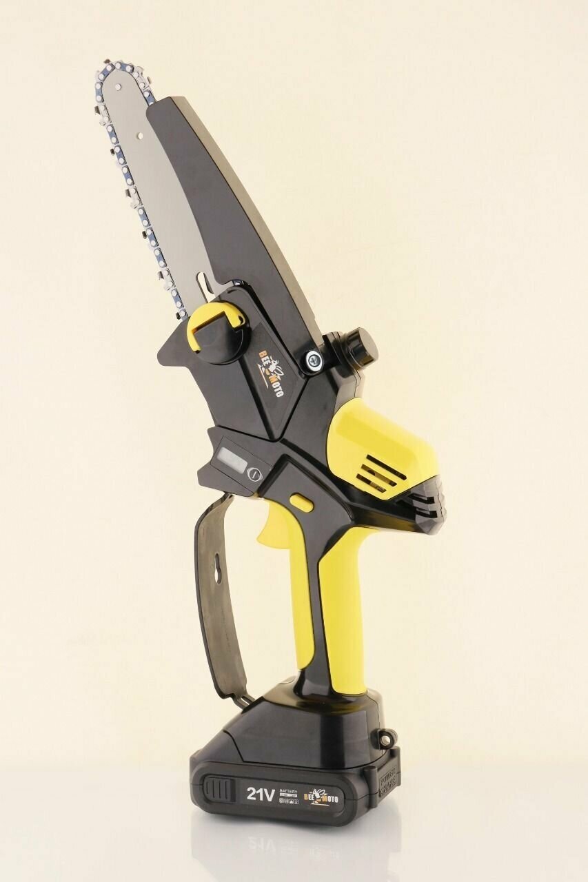 Cordless chain saw 21V 6, 1.5Ah, 2 batteries, lubrication system, display, yellow BEEZMOTO