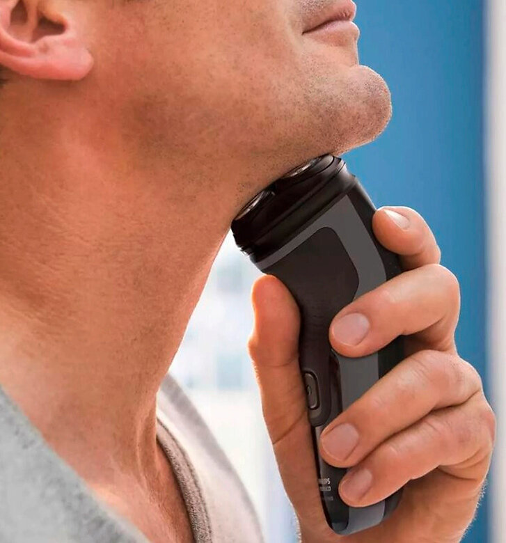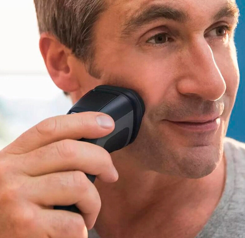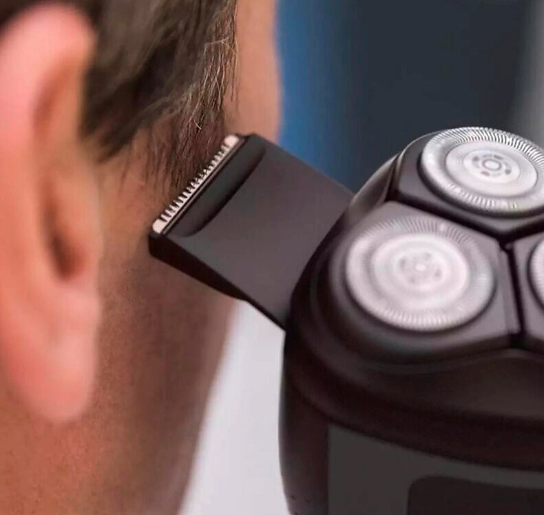 Type of razor: rotary, shaving method: dry, dry, power: autonomous/mains, features: compartment for collecting hairs, trimmer, number of shaving elements: 3