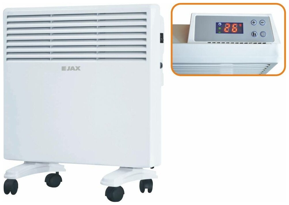 Type of heater: convector, installation: floor, wall, floor / wall, type of heating element: monolithic, features: display, timer, thermostat, protection systems: shutdown when overheating, protection from