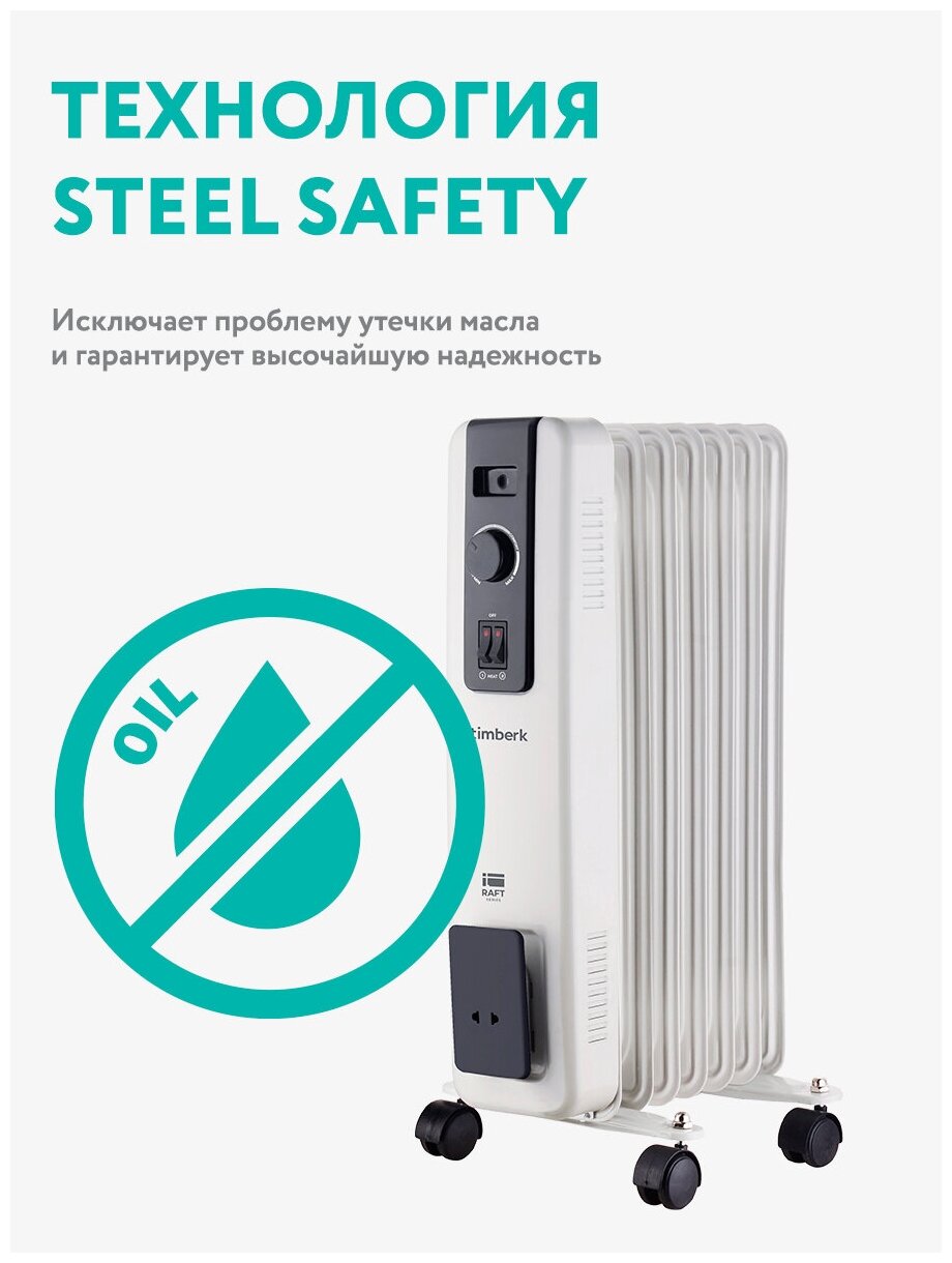 Heater type: oil radiator, installation: floor-mounted, features: power adjustment, temperature adjustment, thermostat, protection systems: shutdown when overheating, control: mechanical