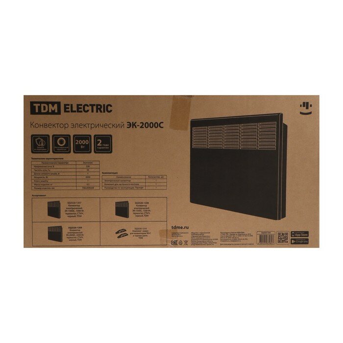 Electric convector EK-2000S, 2000 W, thermostat, stitch, black, TDM