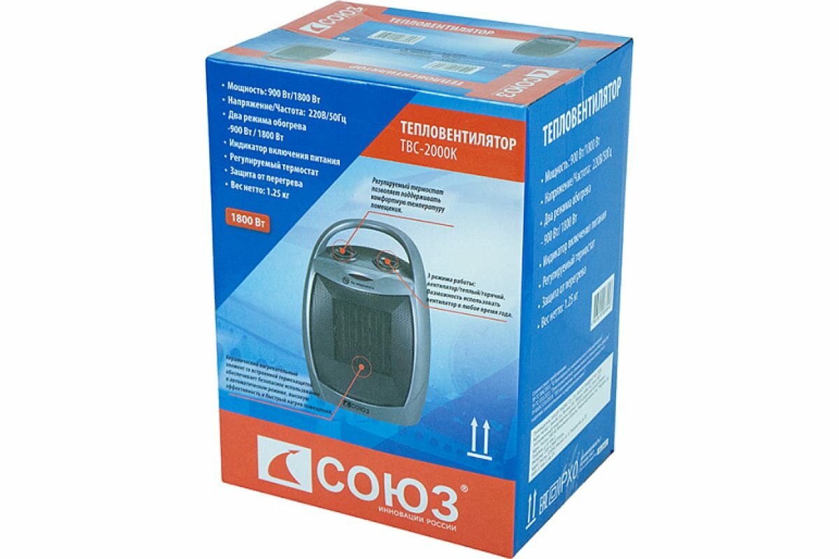 Heater type: fan heater, installation: floor, tabletop, heating element type: ceramic, features: thermostat, control: mechanical