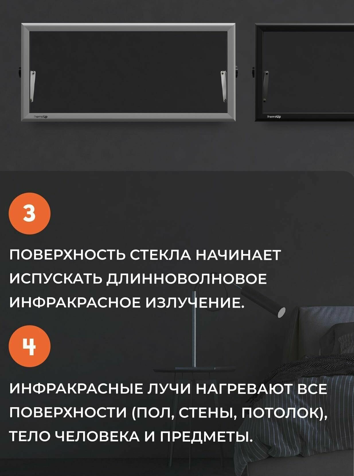 Heater type: infrared, installation: wall, ceiling, heating element type: glass plate, features: thermostat, tilt angle adjustment, protection systems: moisture-proof housing, control: