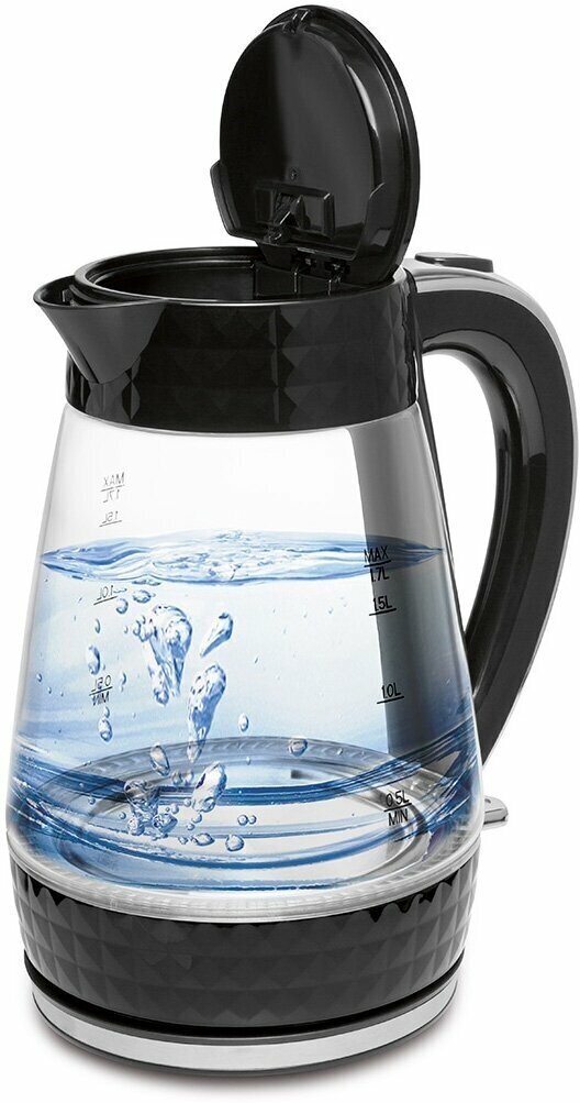 Type: kettle, body material: plastic/glass, volume: 1.70 l, heating element type: closed, features: cord storage compartment, with stand rotation 360 degrees; with cord storage compartment
