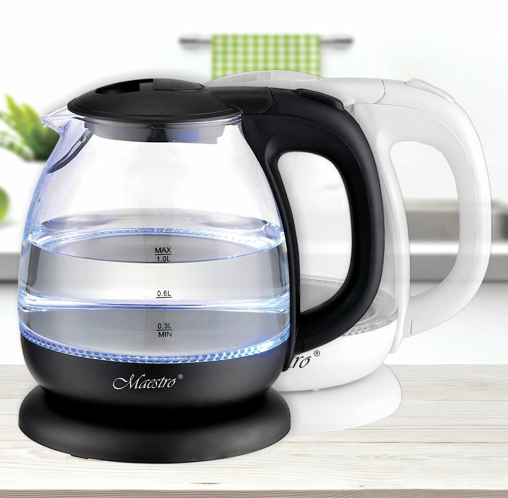 Type: kettle, body material: plastic/glass, volume: 1 l, heating element type: closed, features: 360 degree rotation, water level indicator, power indicator, cord storage compartment
