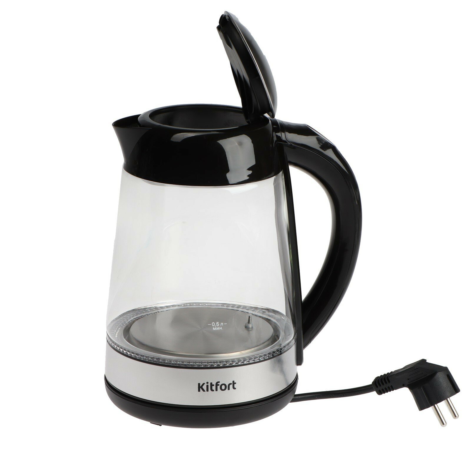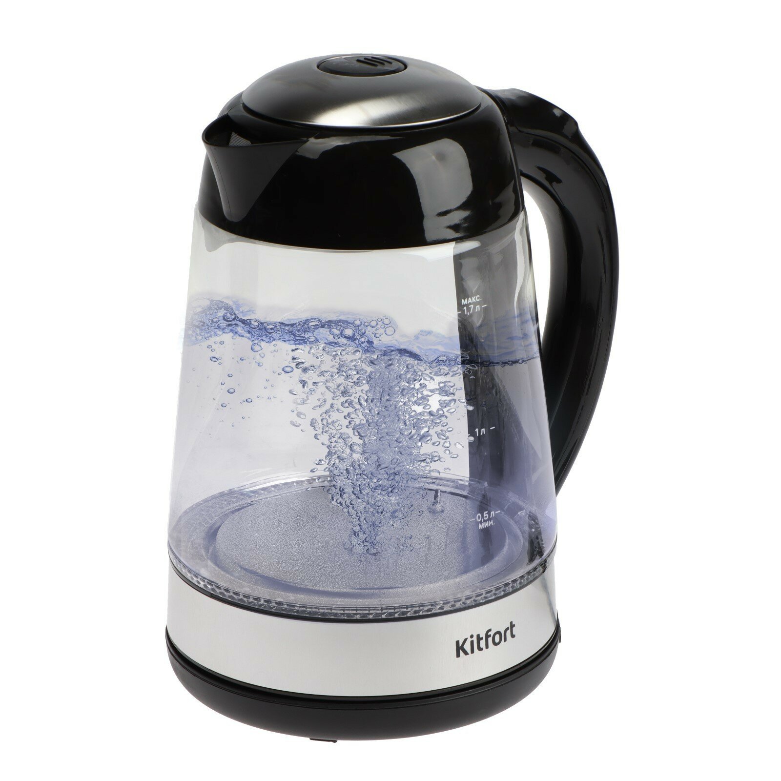 Electric Kitfort KT-6126, glass, 1.7 l, 2200 W, backlight, gray-black