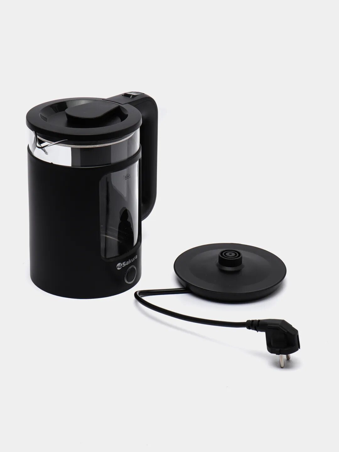 Type: kettle, body material: plastic/glass, volume: 1.50 l, heating element type: closed, features: 360 degree rotation, water level indicator, power indicator, cord storage compartment