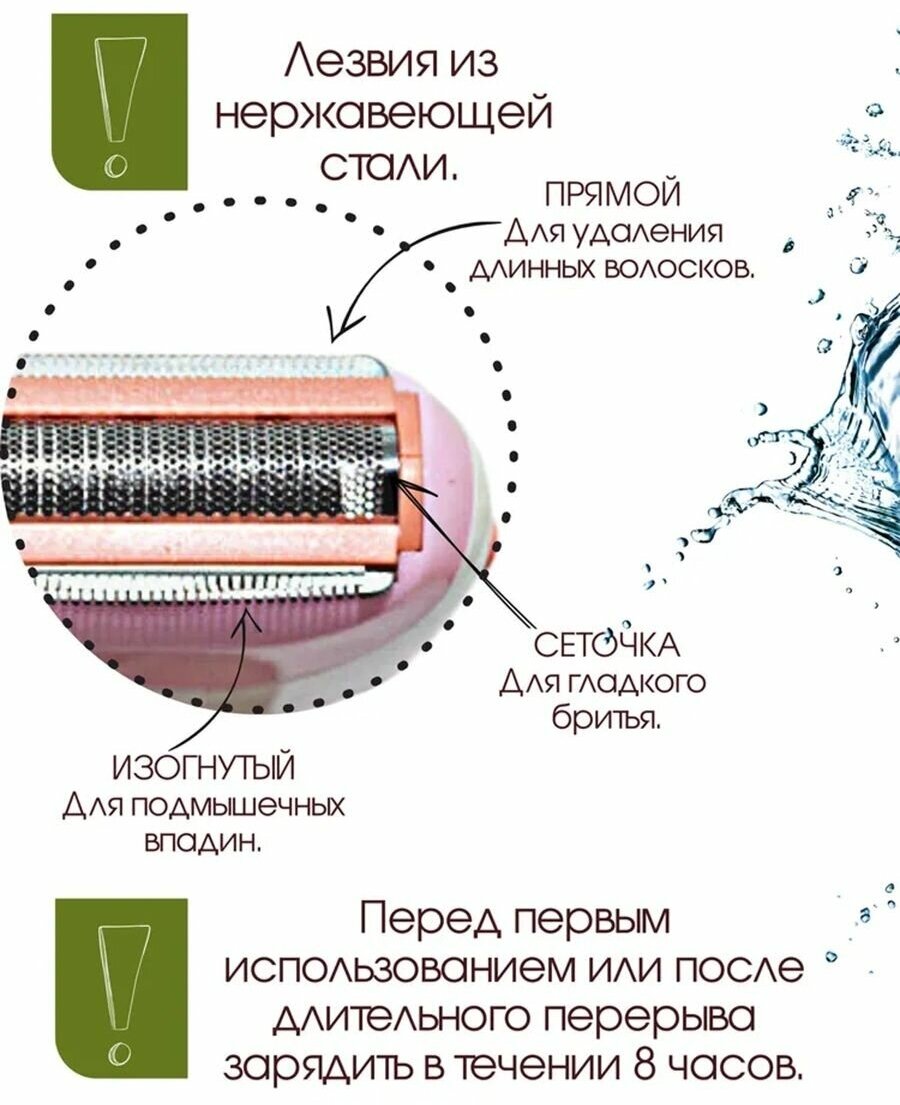Waterproof body, double epilation head, non-slip insert on the handle