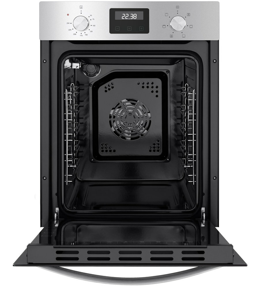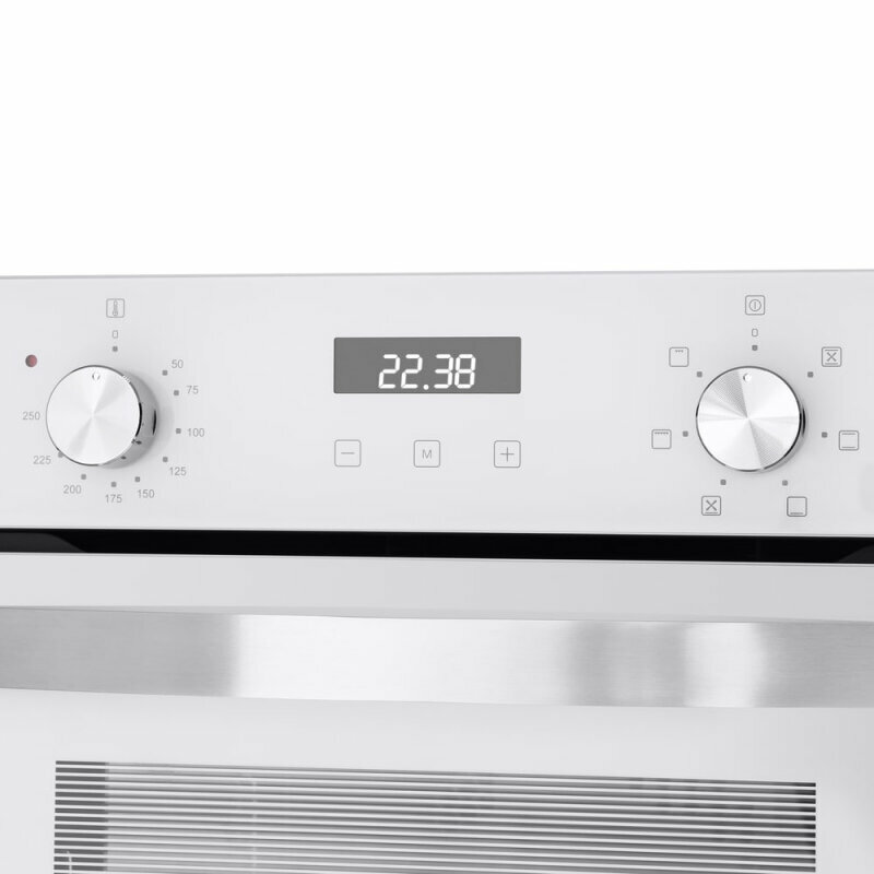 Timer, Cooling fan, Built-in clock, Display, Recipes on the door, Chrome guides
