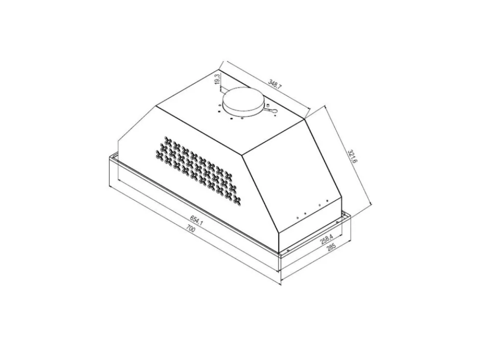 Form factor: built-in, width: 70 cm, depth: 32.20 cm, operating modes: drain / circulation, installation location: in a cabinet, maximum productivity: 1200 m³/hour, filter: grease, control type: electronic, lighting type: