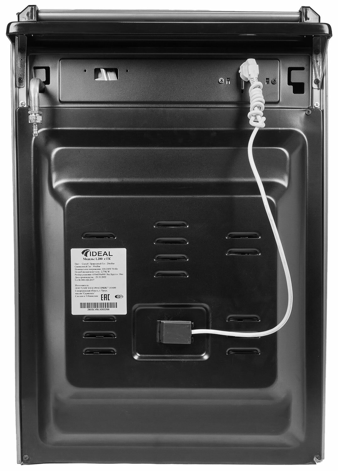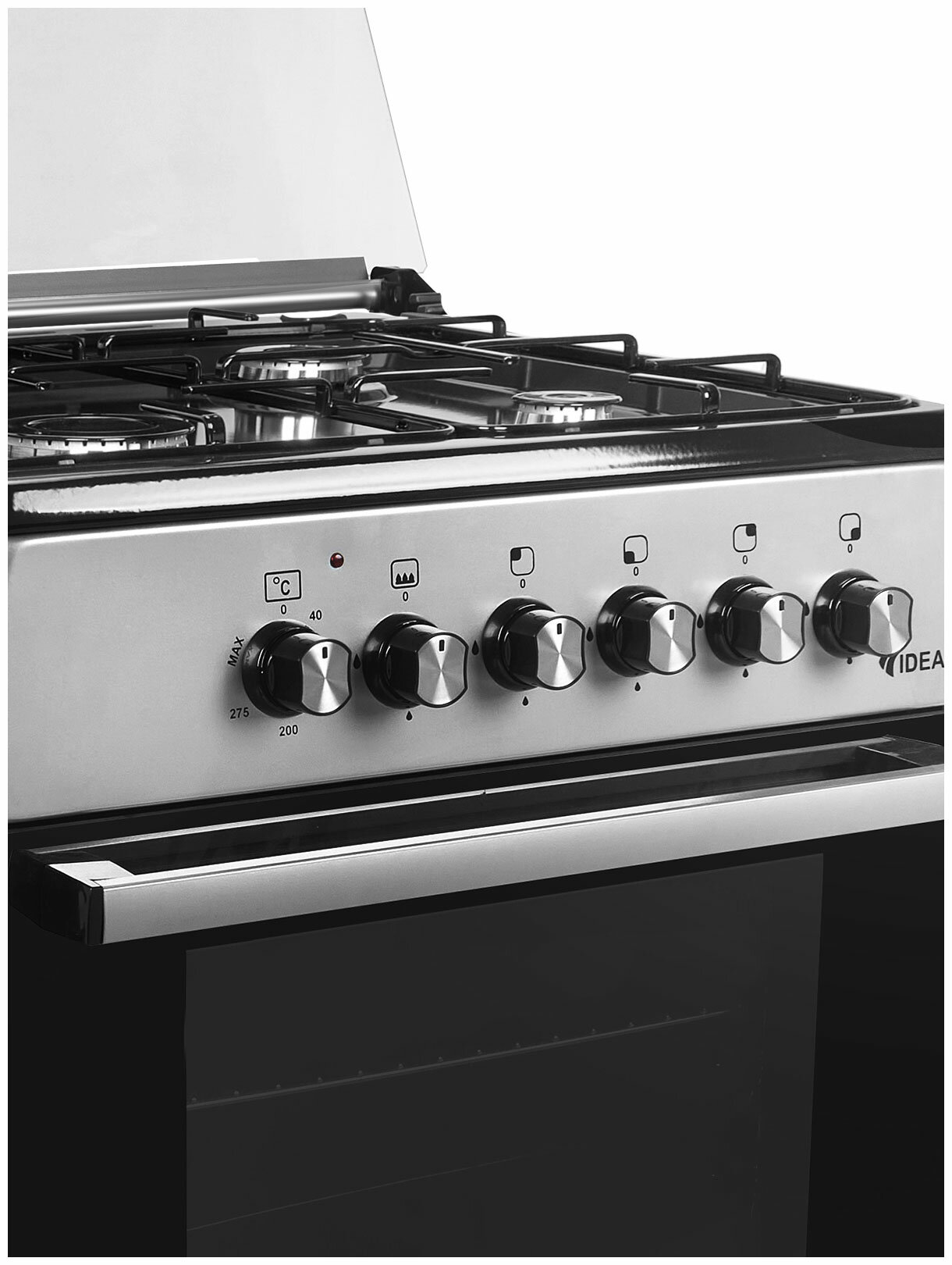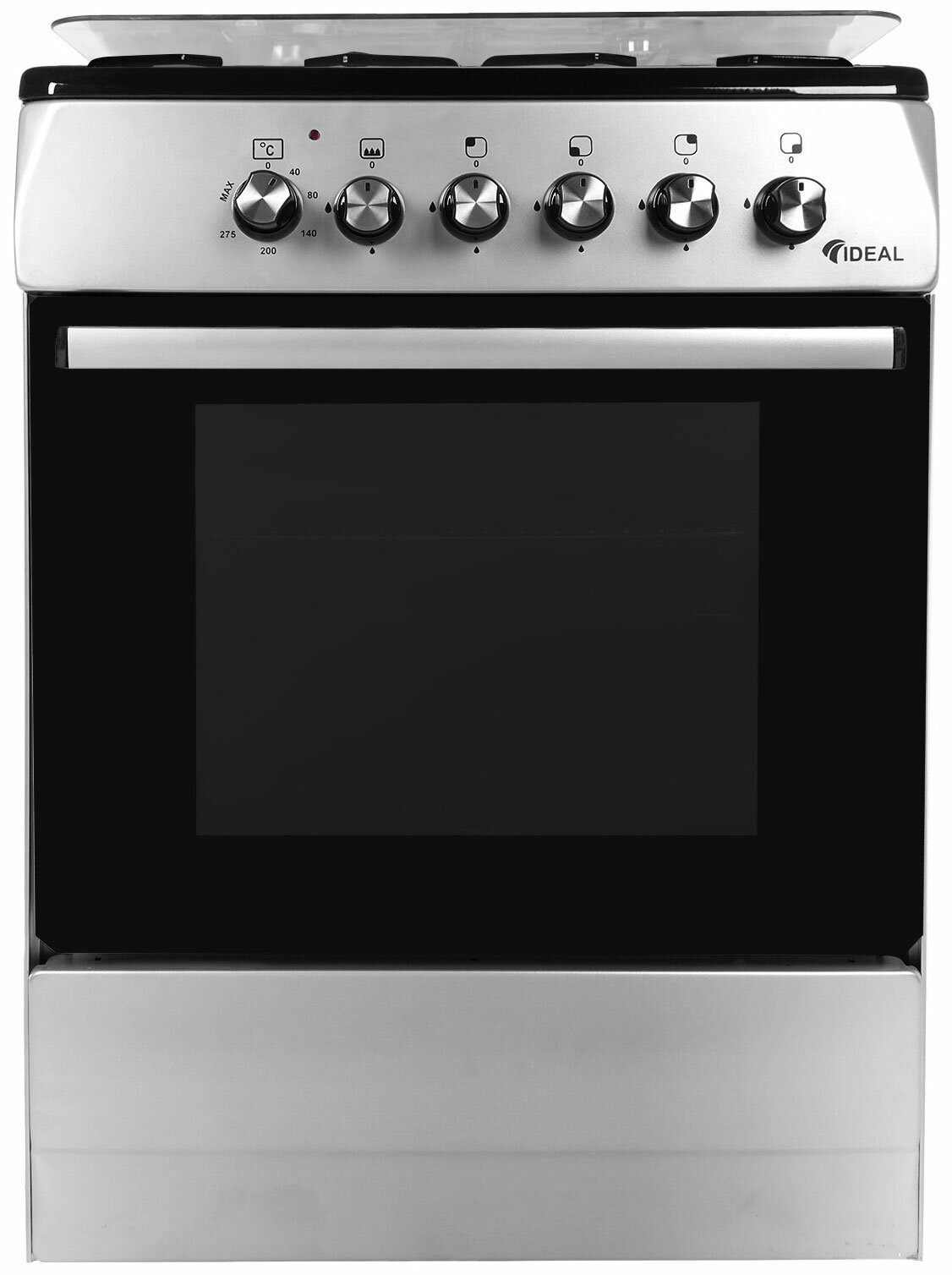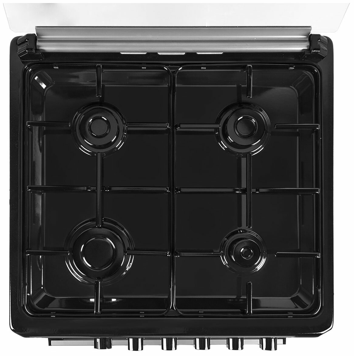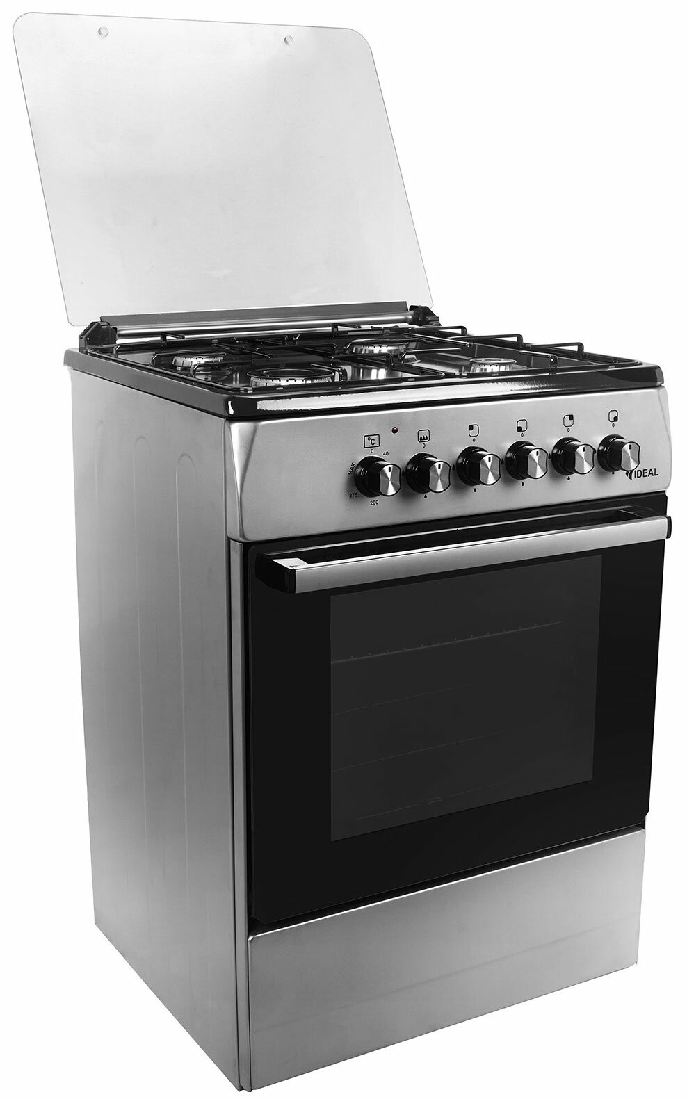 Full glass worktop cover, set of jets for switching to liquefied gas, chrome oven guides.