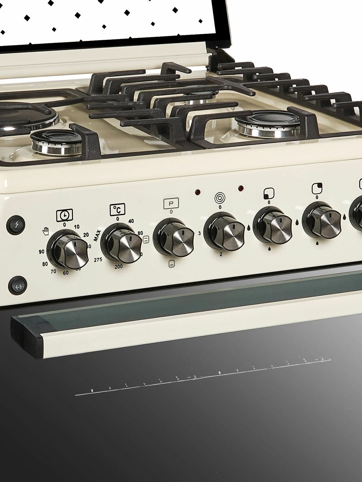 Spit, oven light, cast iron grates, easy clean enamel