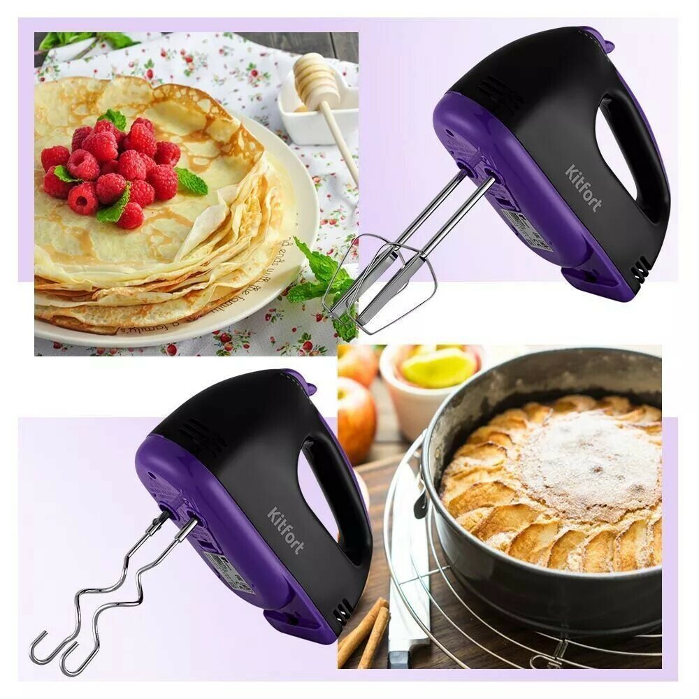Type: manual, power: 100 W, attachments: whisk for whipping, hooks for kneading dough, body material: plastic, design features: device for storing attachments, number of speeds: 7, power cord length: