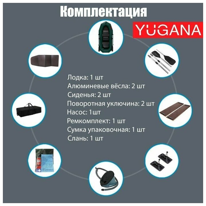 Oars, Pump, Repair kit, Seats, Hat, Packing bag, Oarlocks