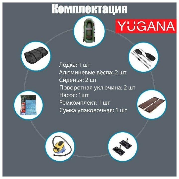 Type: rowing, number of seats: 2, load capacity: 220 kg, boat length: 270 cm, boat width: 130 cm, weight: 15 kg