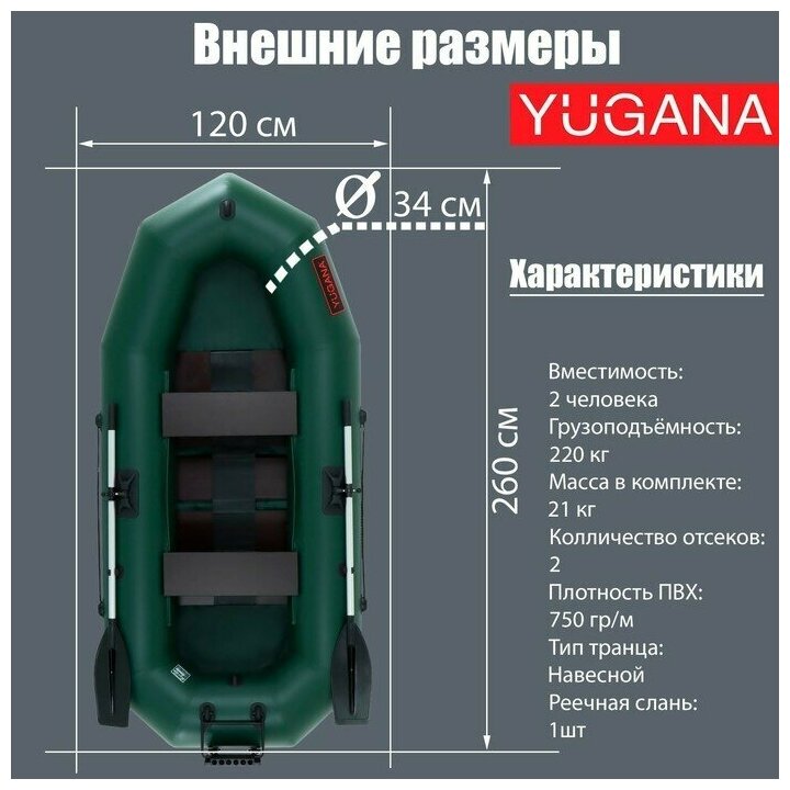 Type: rowing, number of seats: 2, load capacity: 220 kg, weight: 21 kg, transom: mounted