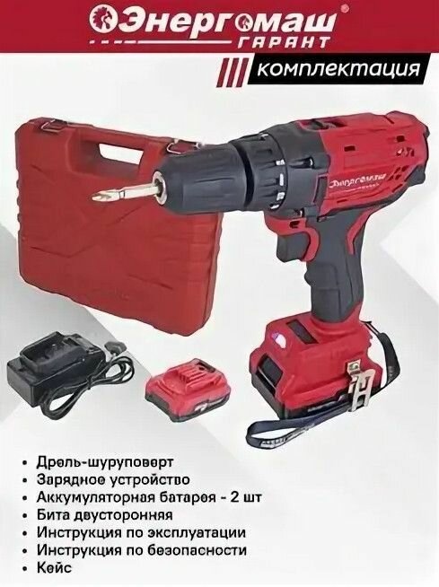 Drill/driver, charger, rechargeable battery 2 pcs., double-sided bit, documentation, case