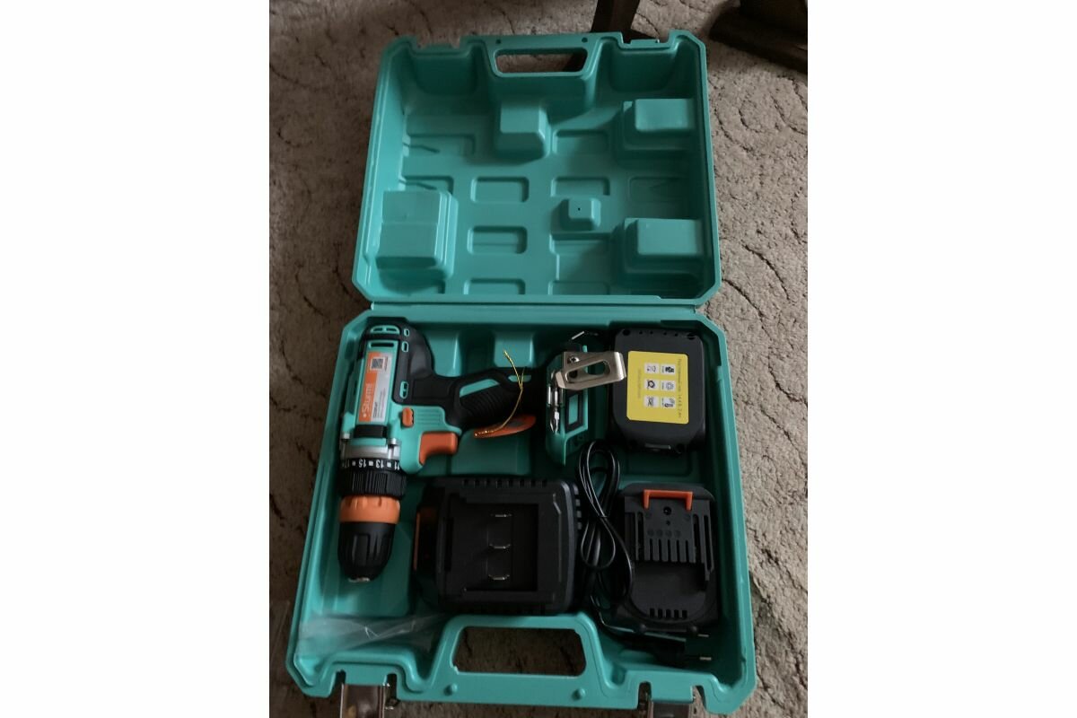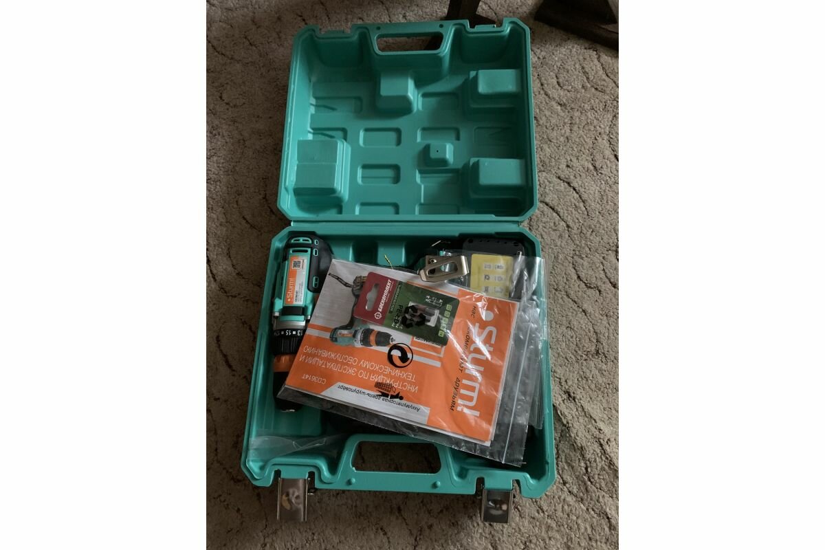 Screwdriver, 2 pcs double-sided bits, 1 pcs charger, 2 pcs rechargeable battery connected to the screwdriver, instructions, case.