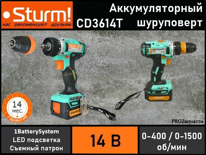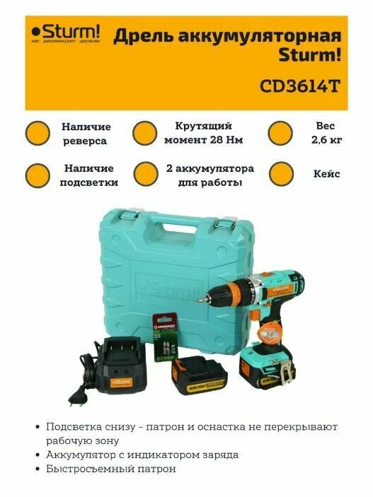 Power supply: battery, battery voltage: 14 V, maximum torque: 28 Nm, number of batteries included: 2, battery capacity: 2 Ah, chuck type: keyless, max. drilling diameter metal