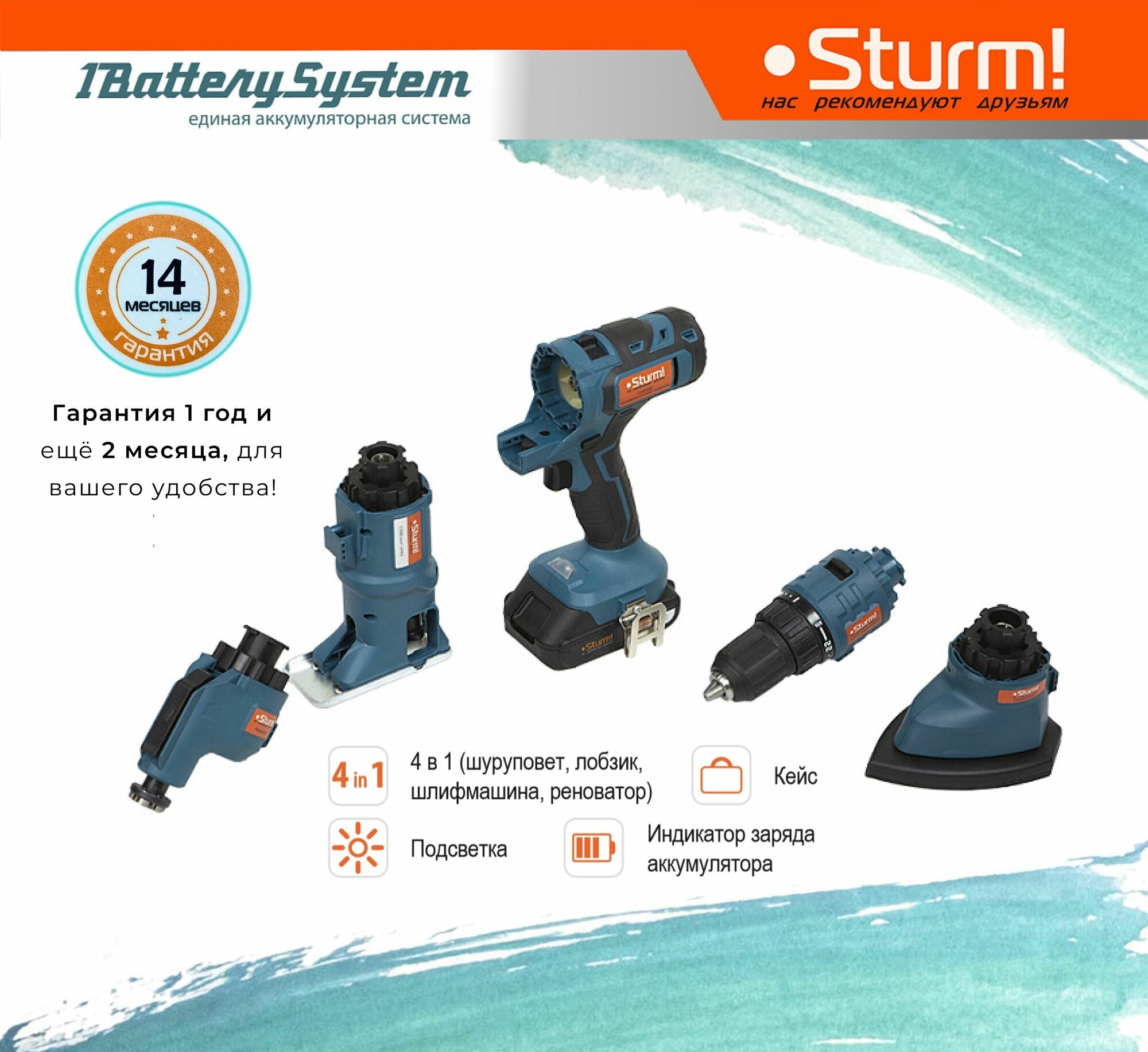 Cordless tool, 2pcs rechargeable battery, Charger, Screwdriver tool, Jigsaw tool, Sanding tool, Renovator tool, 6pcs bit set and bit adapter