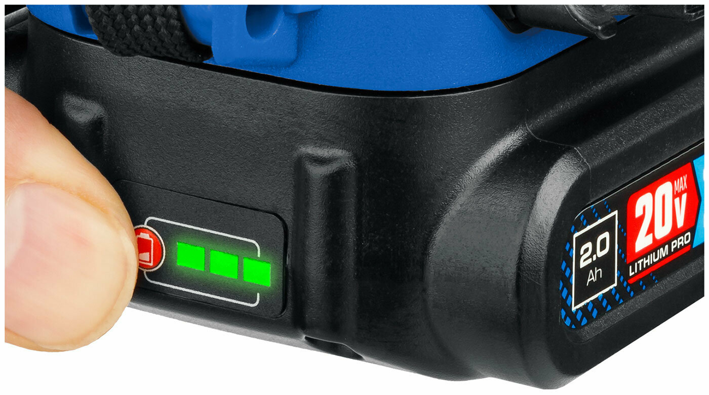 Cordless drill-driver - 1 pc. Battery – 2 pcs. Quick charger – 1 pc. Additional handle - 1 pc. Bit 50 mm, PH, PZ - 1 pc. Operating manual - 1 copy. Safety instructions – 1 copy. Case
